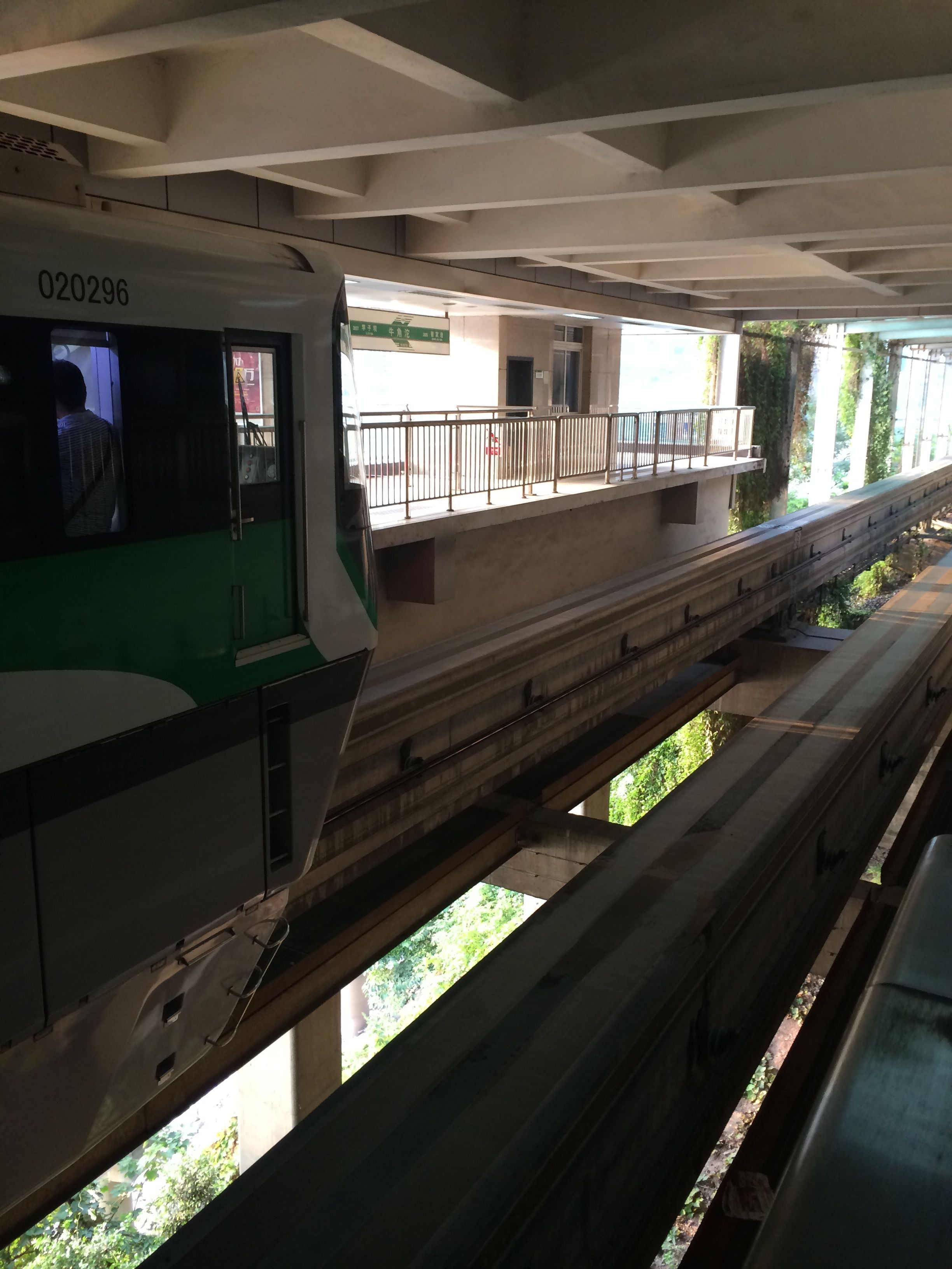 - 重庆的轨道交通很有意思,不少线路都是单轨铁路 (monorail) ,好处是爬坡能力强,拐弯半径小(过山车的节奏)。坏处嘛就是载客能力不行,四节编组的列车过了火车站站就挤爆了。
