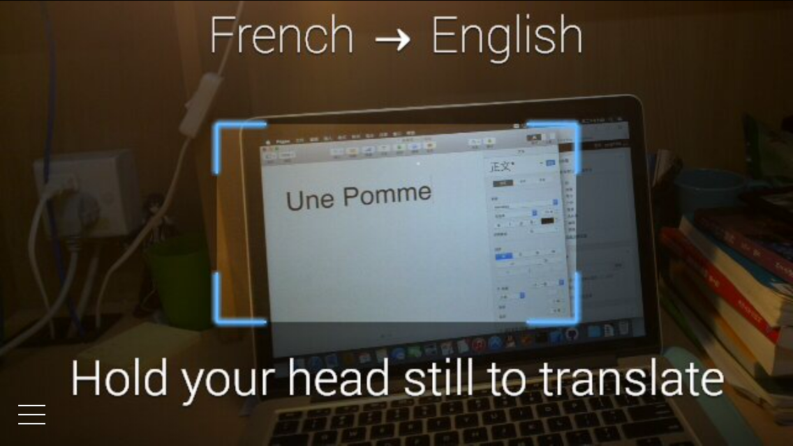 目光稳定,Glass上已经显示出翻译后的画面了
